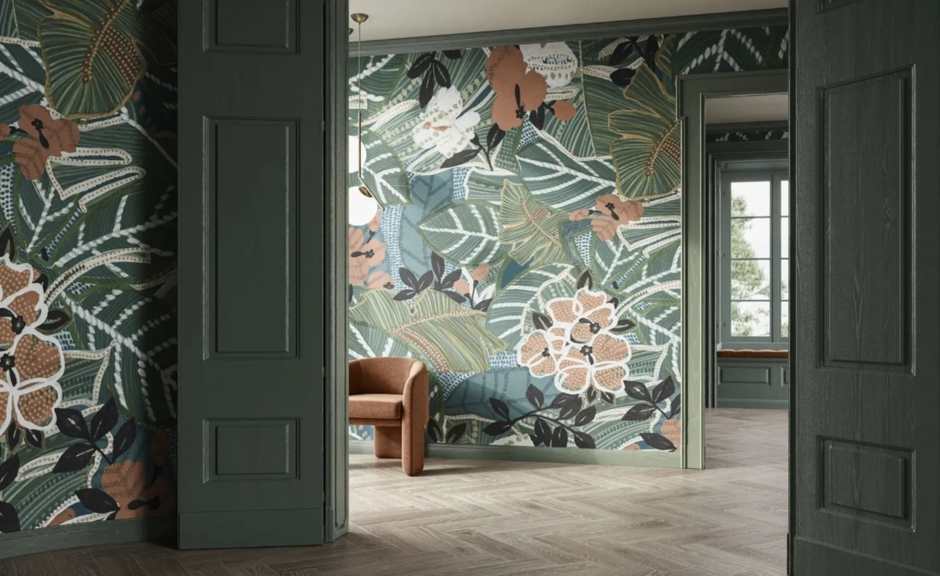 Clicca e scopri di più su un ricco catalogo di Carta da parati in TNT moderna: il modello Kew Gardens di Glamora ti attende!