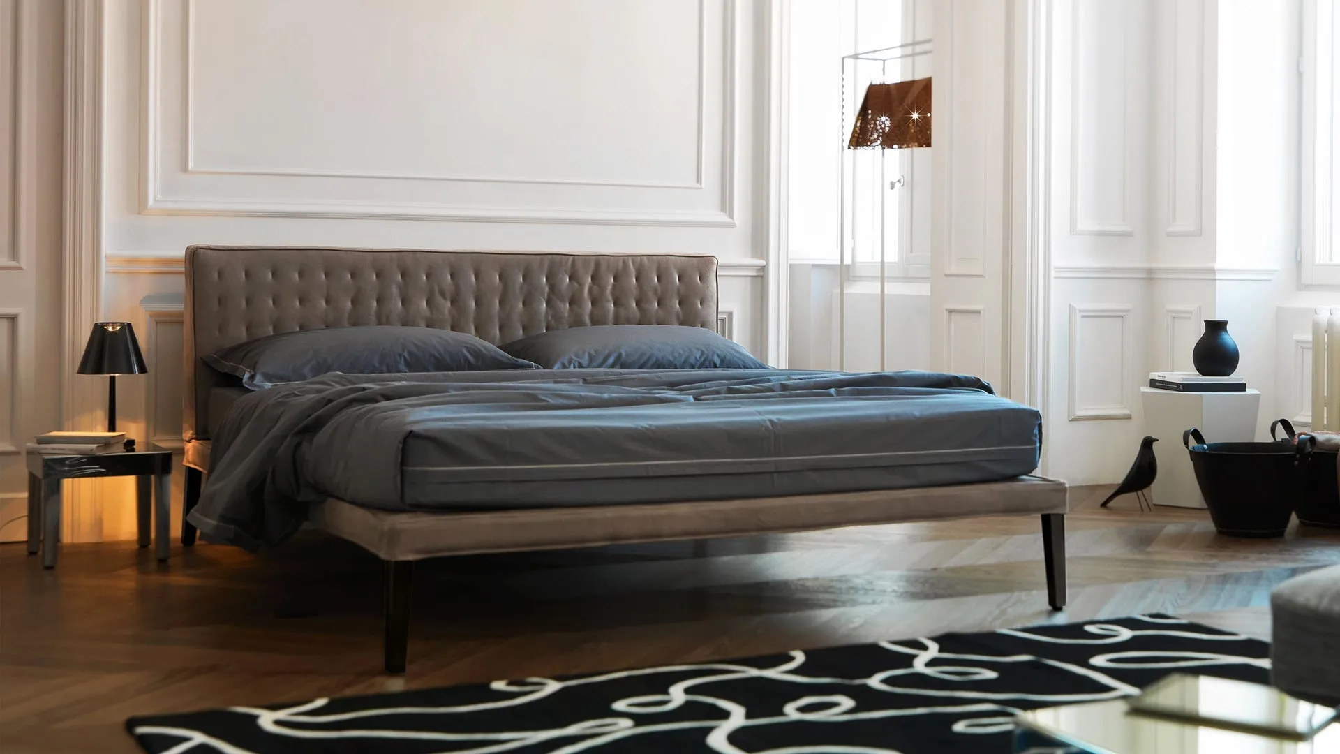 Vuoi attualizzare la camera da letto? Ti presentiamo il letto in tessuto Ebridi Trapuntato di Horm per spazi moderni.