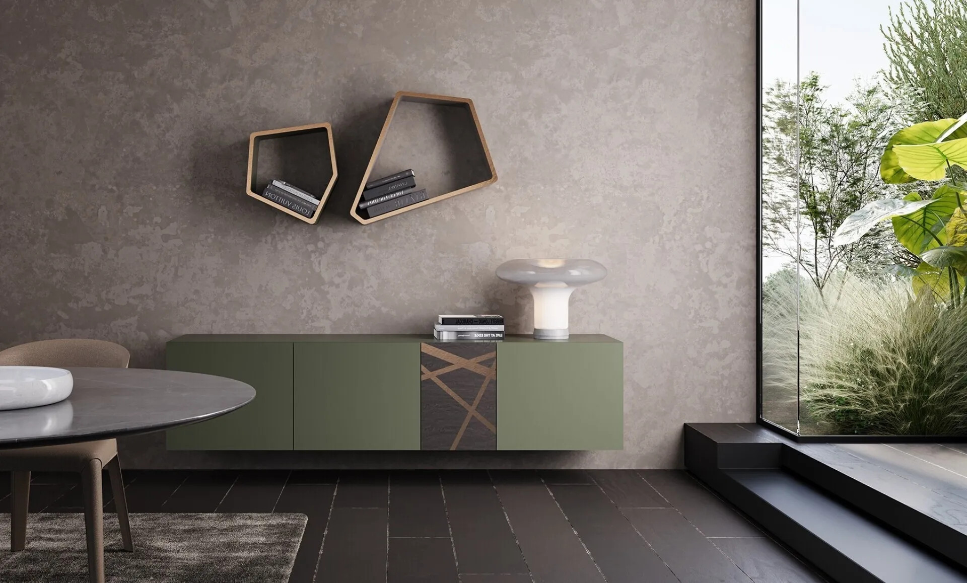 Clicca e scopri di più! Mobile soggiorno Bassorilievo 55 Bronzo Graffiato di Voltan in laccato opaco: ti sta aspettando per completare le tue stanze moderne.