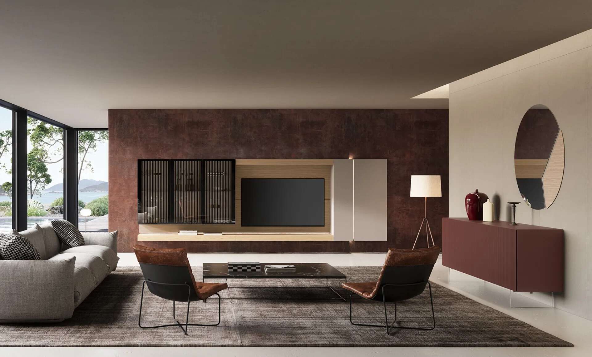 La Parete Attrezzata Soggiorno Lucifer con schienale Quercia di Voltan in foto è una tra le più esclusive soluzioni d’arredo in commercio: grandi doti di componibilità e le diverse opportunità di progettazione la rendono bella e di grande qualità. Voltan propone originali modelli di mobili soggiorno, diversi per stile e conformazioni, texture e elementi: scopri nel nostro showroom l'Arredamento Casa delle migliori marche. Visto che il living deve essere uno spazio ben organizzato e di grande valore estetico, sono necessari alcuni arredi belli e pratici come le Pareti Attrezzate. Lasciati stuzzicare da un ricco catalogo di arredi per la zona giorno e troverai la parete attrezzata che fa al caso tuo.