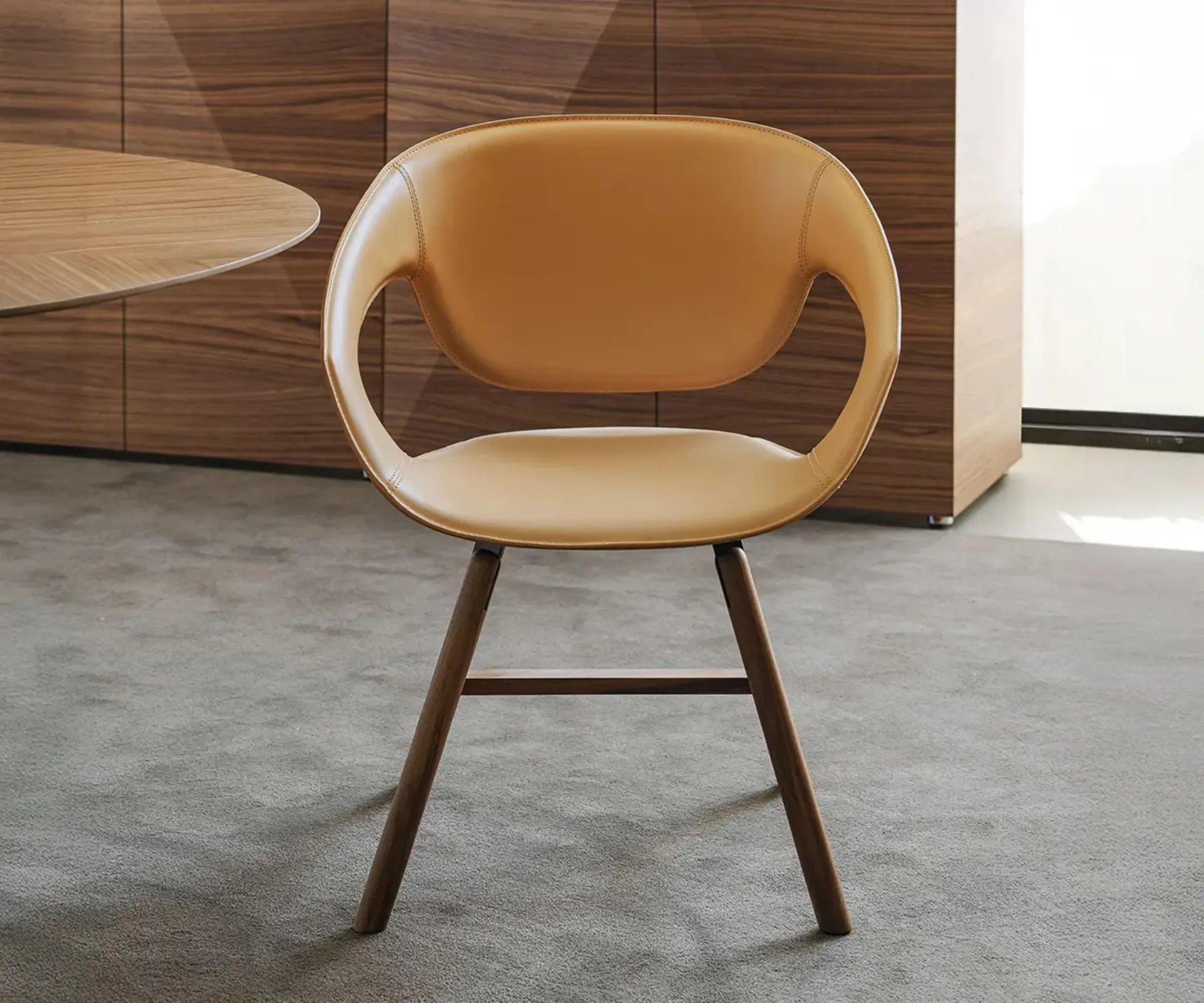 Clicca per scoprire una ricca gamma di sedie fisse per stanze design: il modello Vad Wood Cuoio di Horm ti sta aspettando!